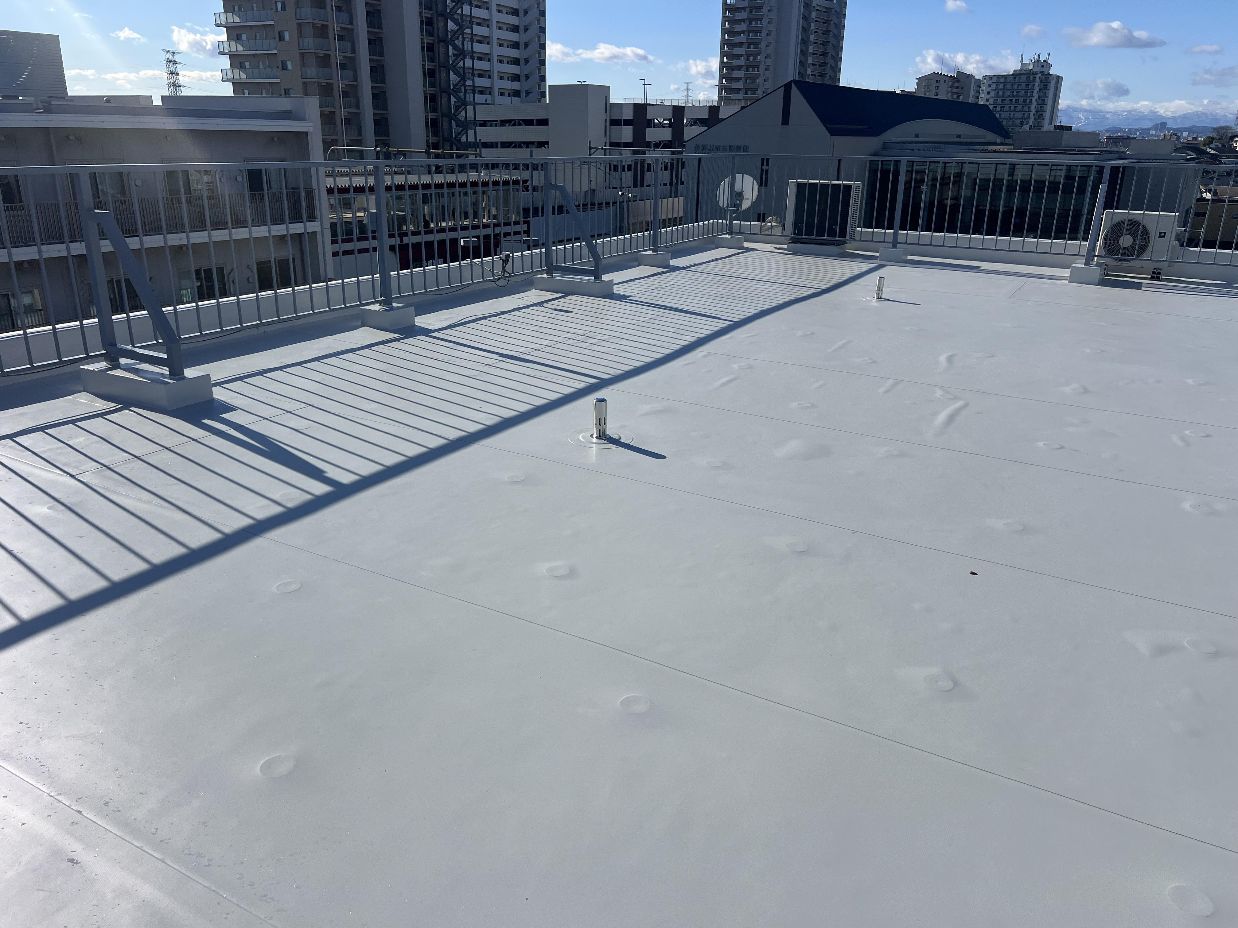 | 使用材料 | 塩ビシート防水機械固定工法+立ち上がり基礎塗膜複合防水 |
